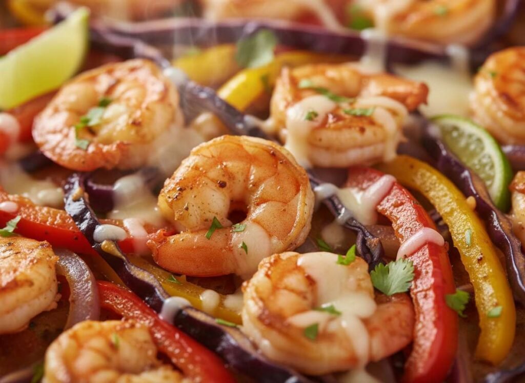 This recipe is specifically designed for the Longevity Kitchen. By utilizing lean, high-quality protein from shrimp and a “rainbow” of anti-inflammatory vegetables, we are supporting our metabolic health without sacrificing the Dopamine Dining experience. We also leverage the “Cabbage Crush” strategy—including thick ribbons of purple cabbage that char beautifully in the oven—to provide a high-fiber, gut-health supportive base that eliminates the need for processed flour tortillas.
