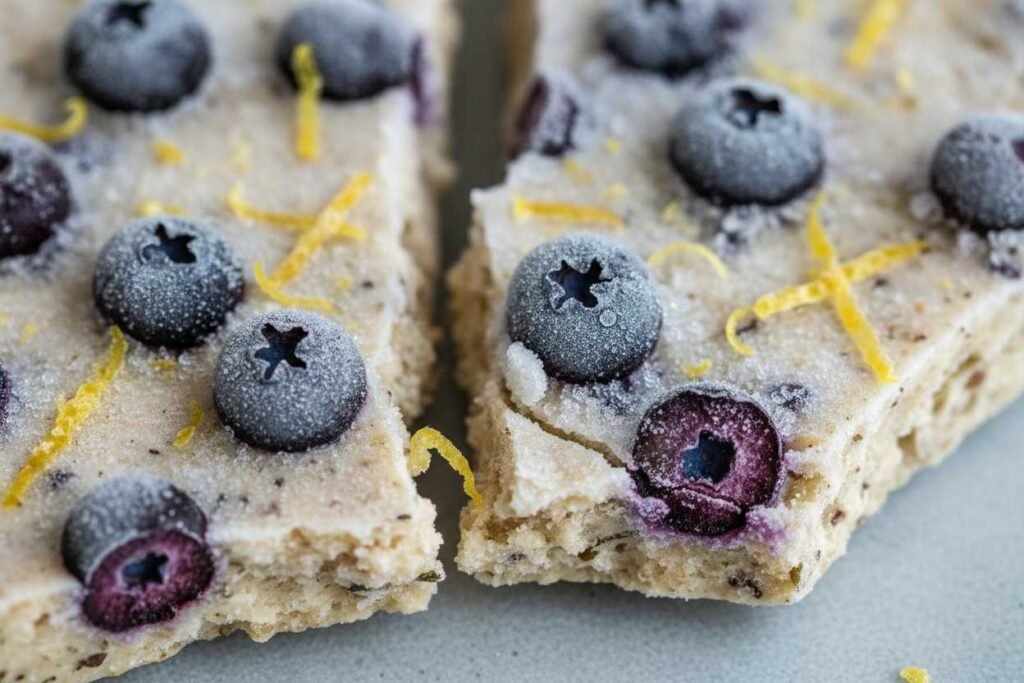Sprinkle the remaining whole blueberries and the lemon zest over the surface. The bright yellow and deep purple contrast is pure Dopamine Dining, visually signaling freshness to your brain.