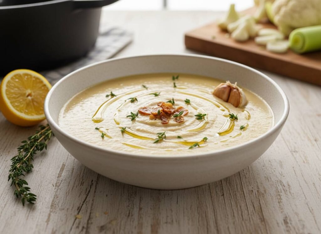 15-Min Creamy Roasted Garlic & Cauliflower Soup (The “Alkaline-Emulsion”)