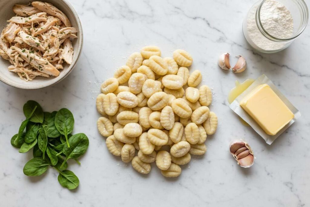 This soup is incredibly rich and creamy, thickened just enough to coat a spoon beautifully without being gloopy. The flavor base is savory chicken broth enriched with garlic, onion, and thyme. The gnocchi provide soft, chewy bites, the chicken adds heartiness, and the spinach offers a fresh, earthy contrast to the richness of the heavy cream.