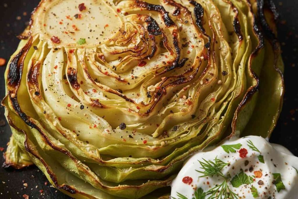 - Serve: Plate the crispy cabbage steaks and top each with a generous dollop of the high-protein sauce. Finish with a sprinkle of red pepper flakes or toasted seeds.
