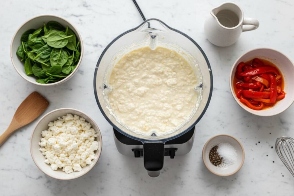 Preheat your oven to 300°F (150°C). Note the lower temperature; cooking eggs low and slow is key to preventing them from puffing up and then collapsing. In a high-speed blender, combine the eggs, cottage cheese, garlic powder, salt, and black pepper. Blend on high for 30–45 seconds until the mixture is completely smooth and slightly frothy.