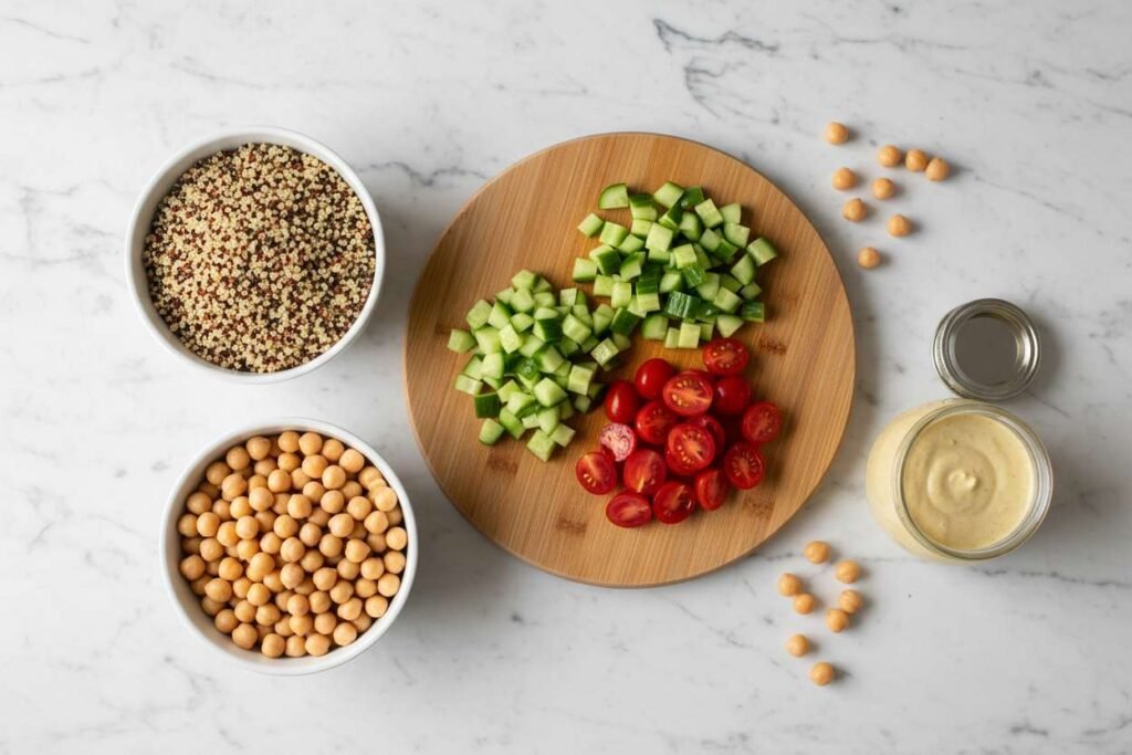 The beauty of this dish lies in its balance. Quinoa is a “complete protein,” meaning it contains all nine essential amino acids. When combined with fiber-rich chickpeas, crisp cucumbers, and the healthy fats in our signature lemon tahini dressing, you create a meal that is as satisfying as it is colorful. It is the perfect healthy vegan lunch for busy workdays because it actually tastes better after the flavors have had a chance to meld in the fridge.