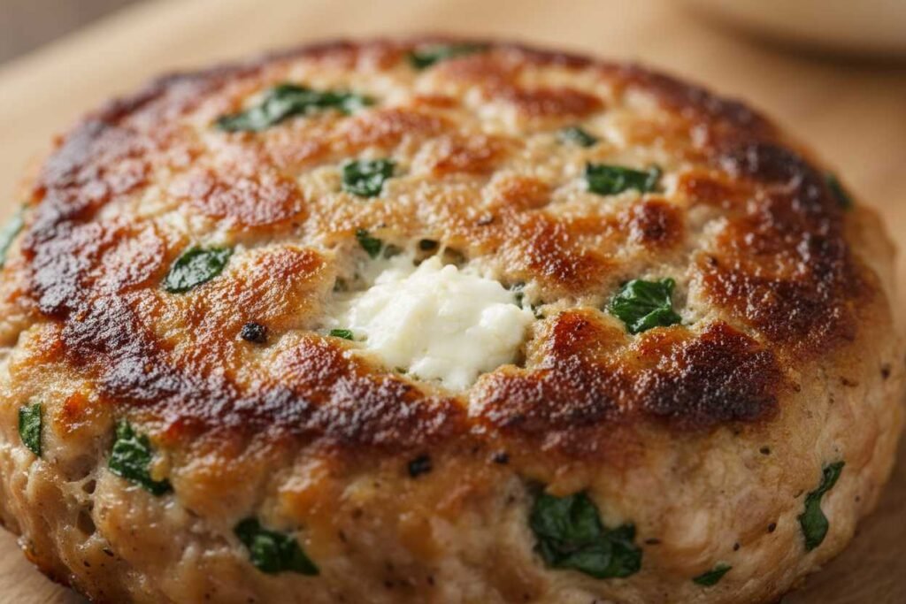 Ground turkey is much leaner than beef, which means it can easily overcook. By adding finely chopped fresh spinach, you are essentially adding “moisture packets” to the meat. As the burgers cook, the spinach releases a tiny amount of steam, and the feta cheese softens into creamy pockets, ensuring that every bite is tender and juicy.