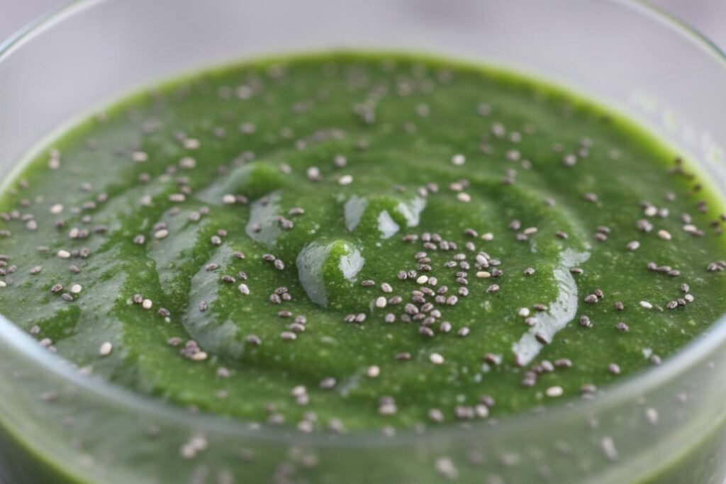 - Blend: Start on a low speed and gradually increase to high. Blend for 45–60 seconds until the mixture is a vibrant, uniform green with no visible leaf bits.