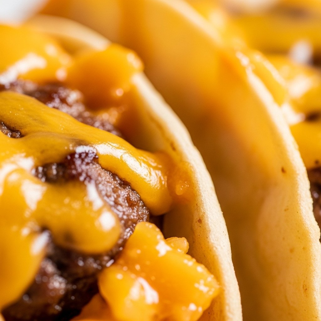 - Assemble: Stack two cheesy burger tacos together. Drizzle generously with the Special Burger Sauce and top with thin slices of red onion and several dill pickle slices. Serve immediately.
